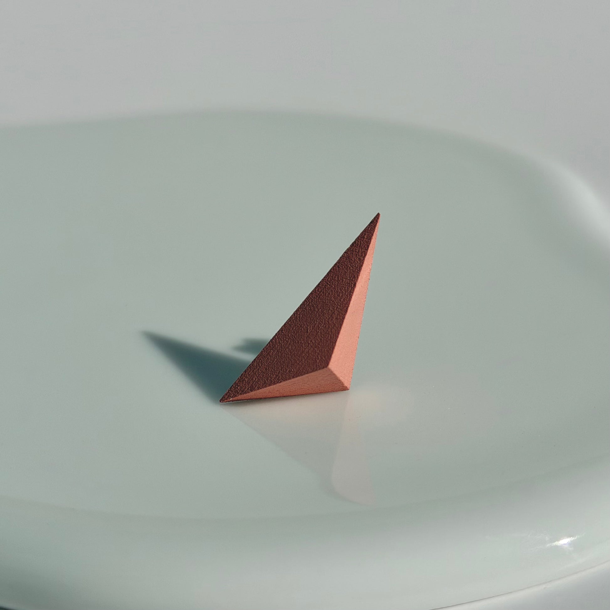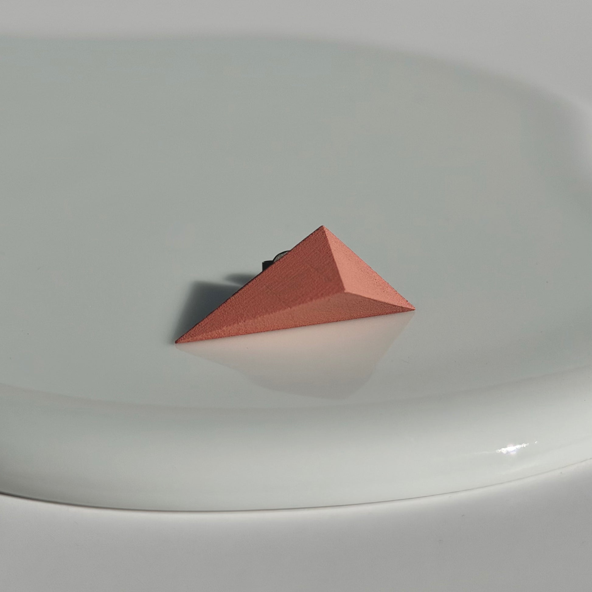 A handpainted original wood piece 'scalene triangle' pierced earring.