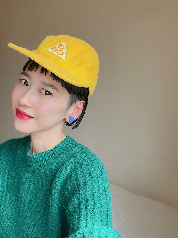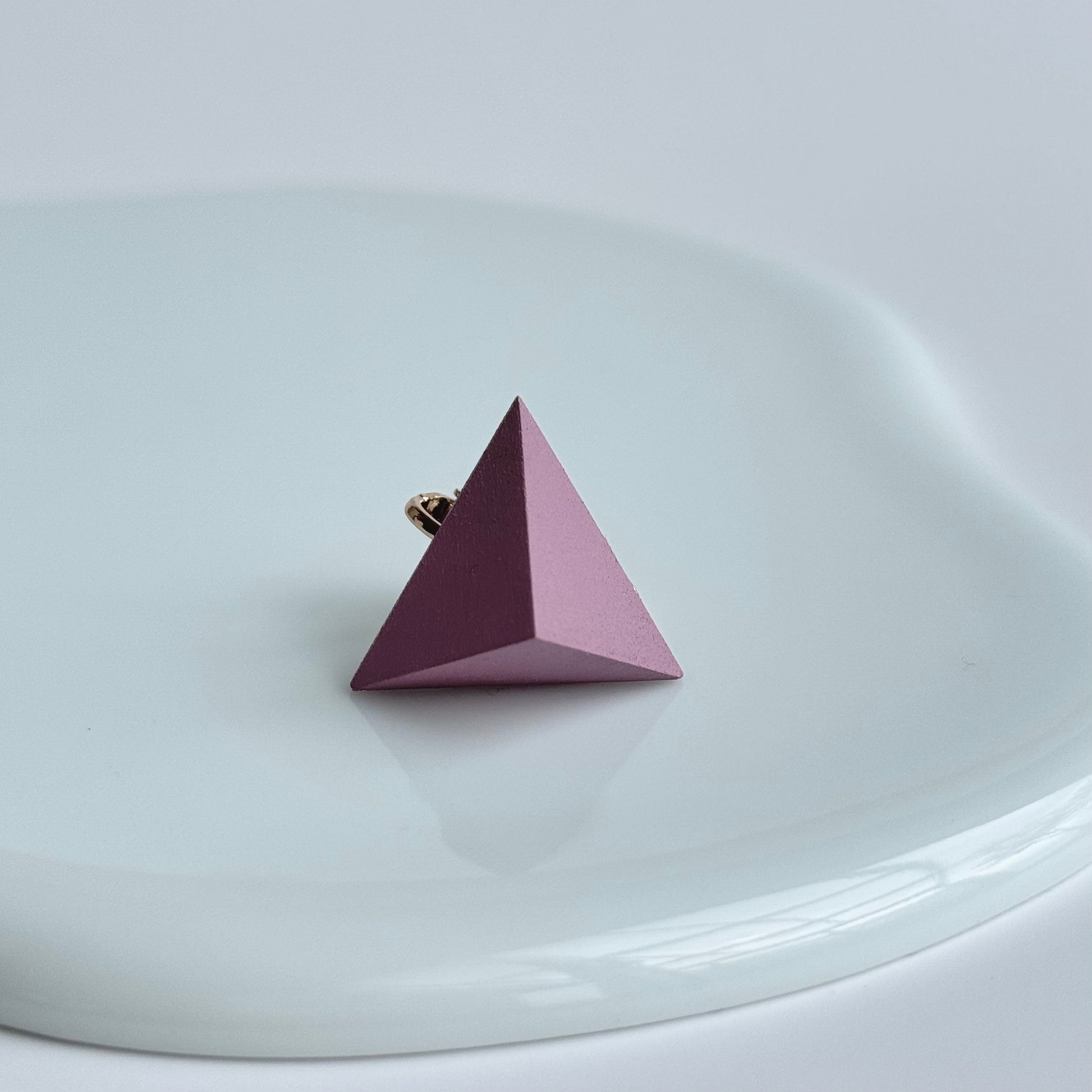ハンドペイントしたオリジナルウッドピース 「正三角形」のイヤリング。すべて手作業で仕上げた一点ものです。
