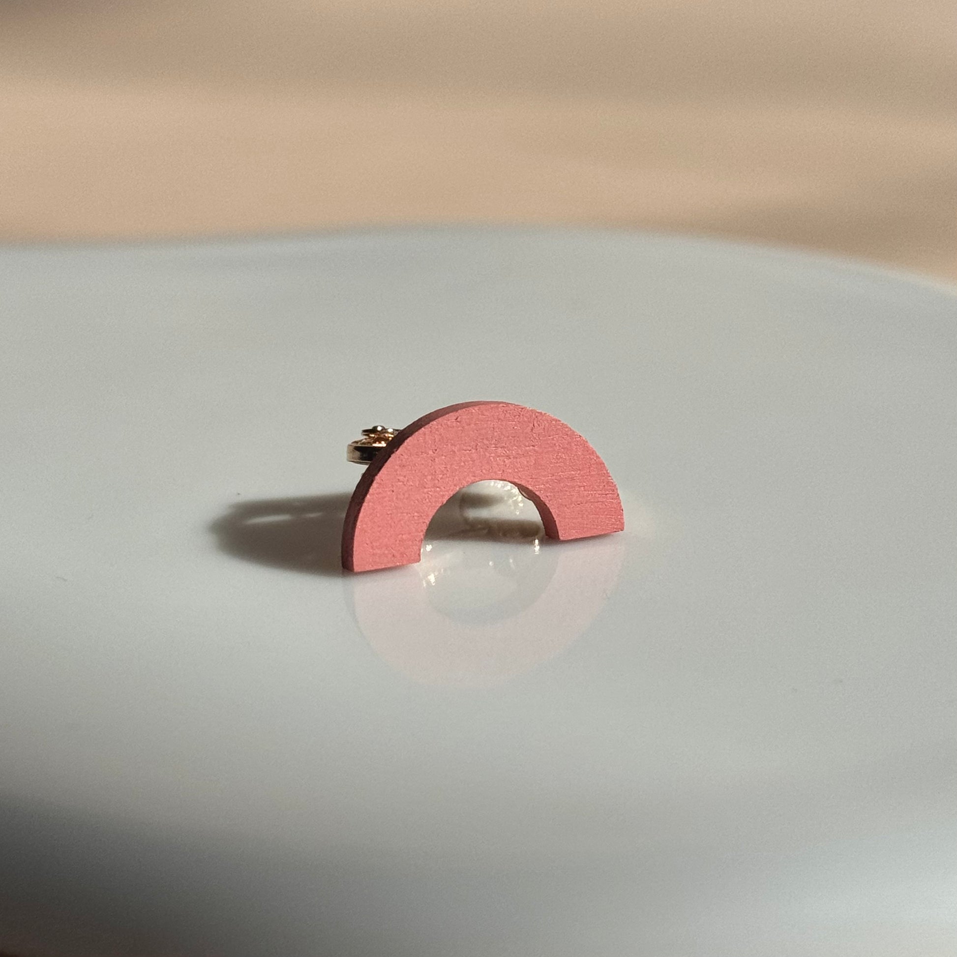Handpainted original wooden 'Arch' clip on earring.