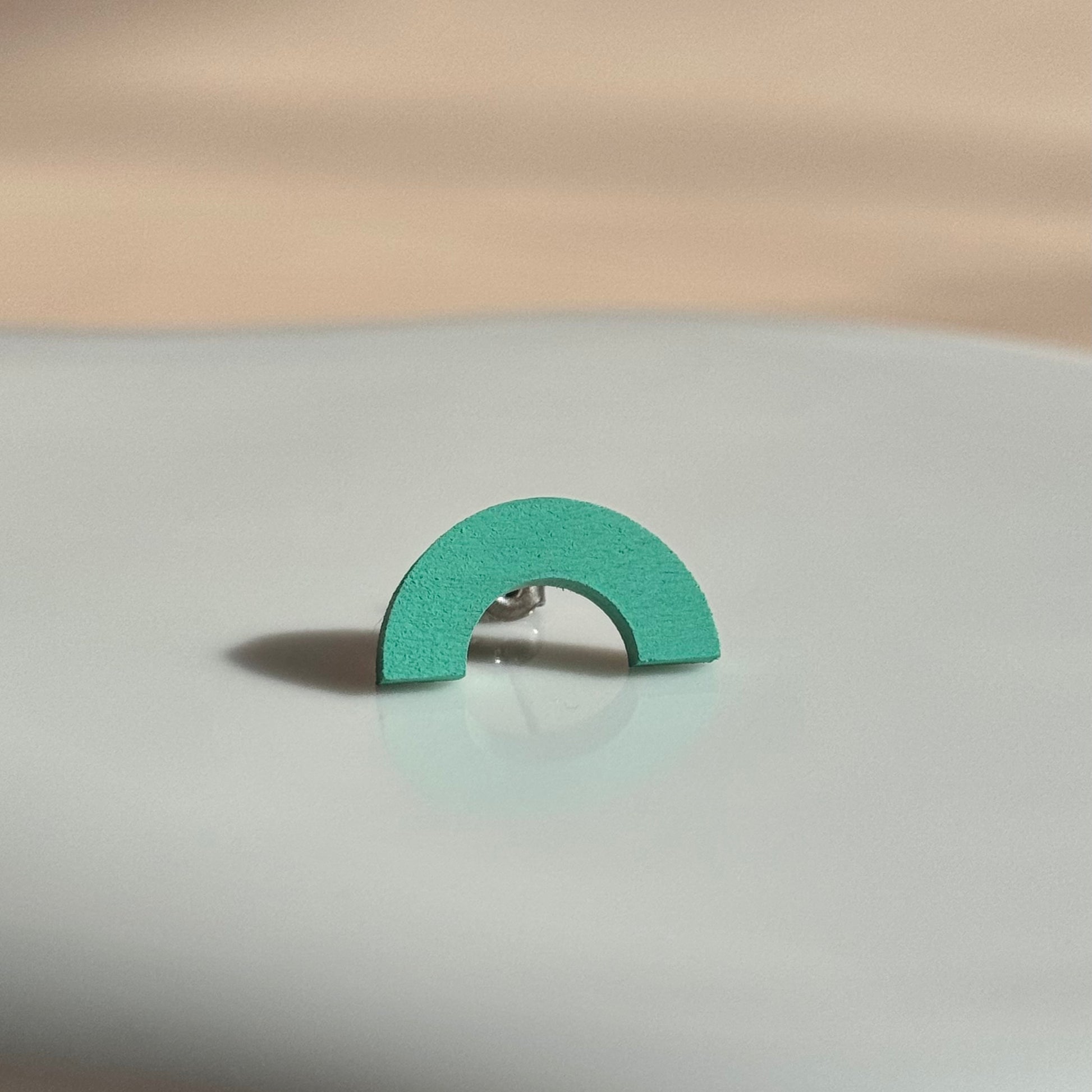 オリジナルのウッドピース「アーチ」のピアス。すべて手作業で仕上げた一点ものです。