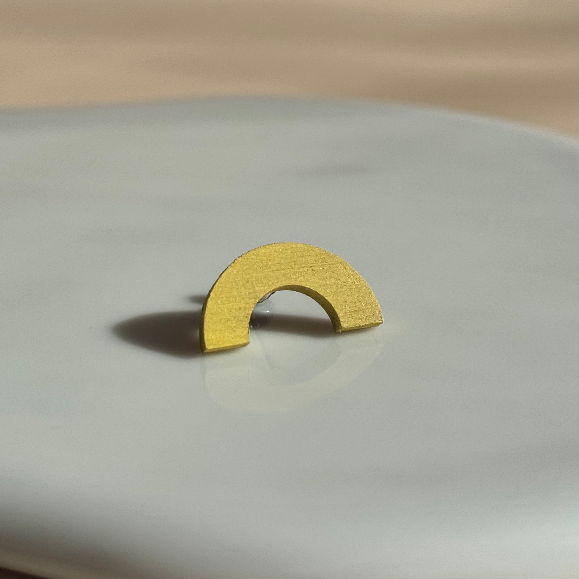 オリジナルのウッドピース「アーチ」のピアス。すべて手作業で仕上げた一点ものです。