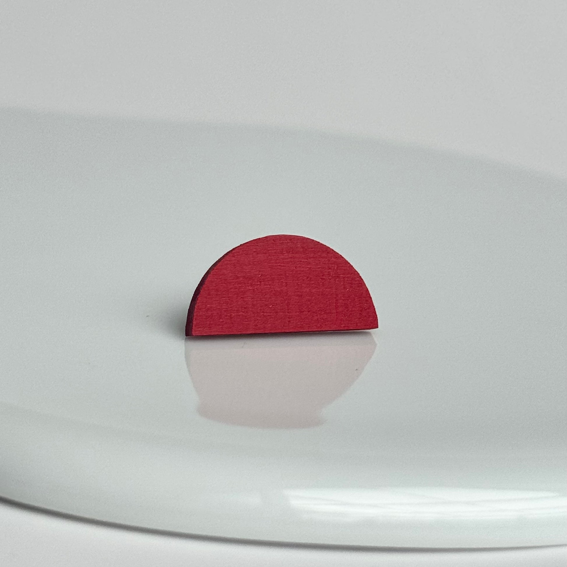 Handpainted original wooden 'Semi-circle' pierced earring.
